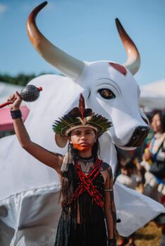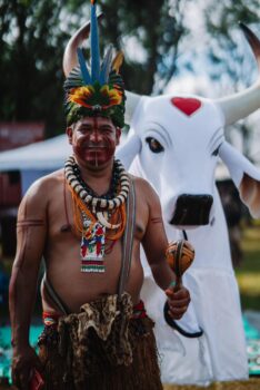 O Boi-Bumbá Garantido, portanto, reafirma seu lugar enquanto bandeira de luta e cultura que caminha ao lado dos povos indígenas, na defesa da vida, dos territórios e do futuro da Terra.