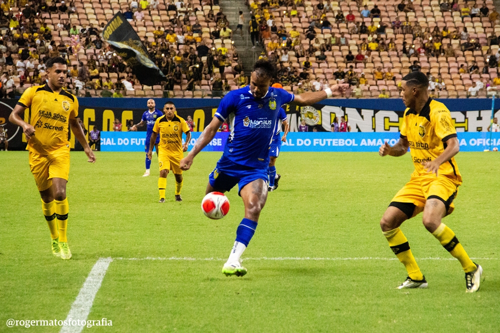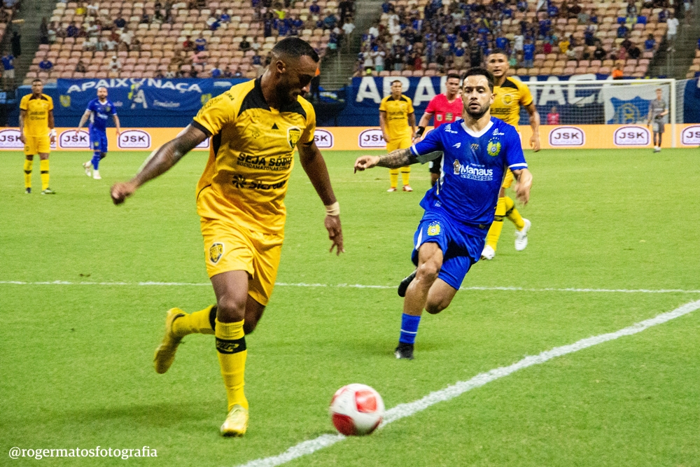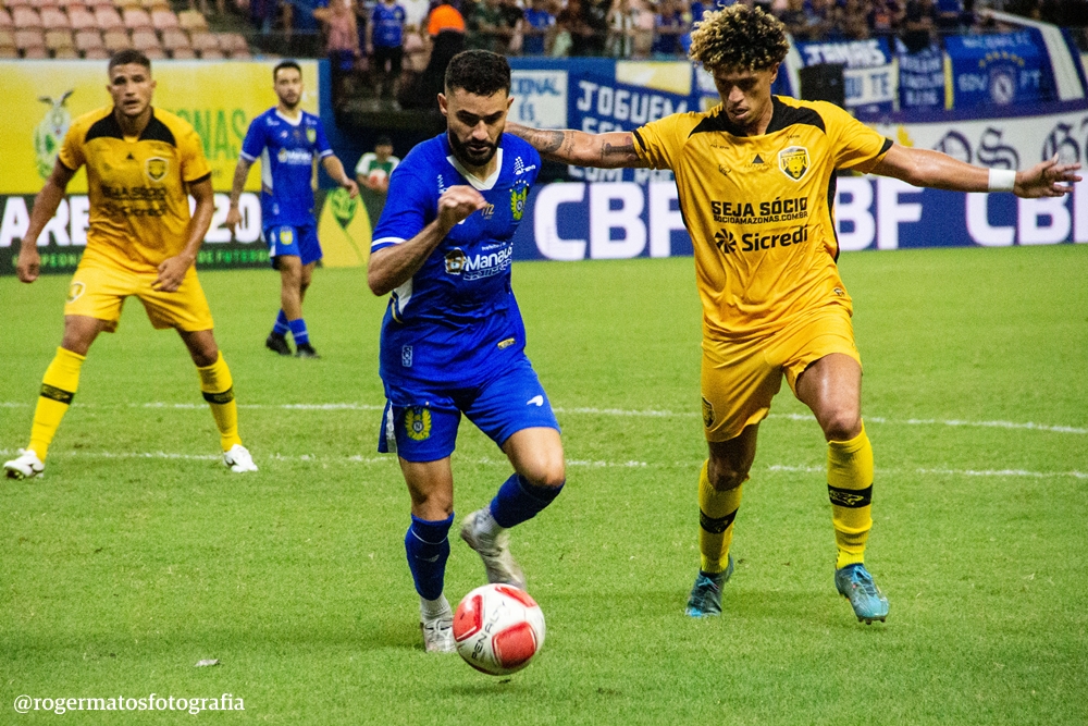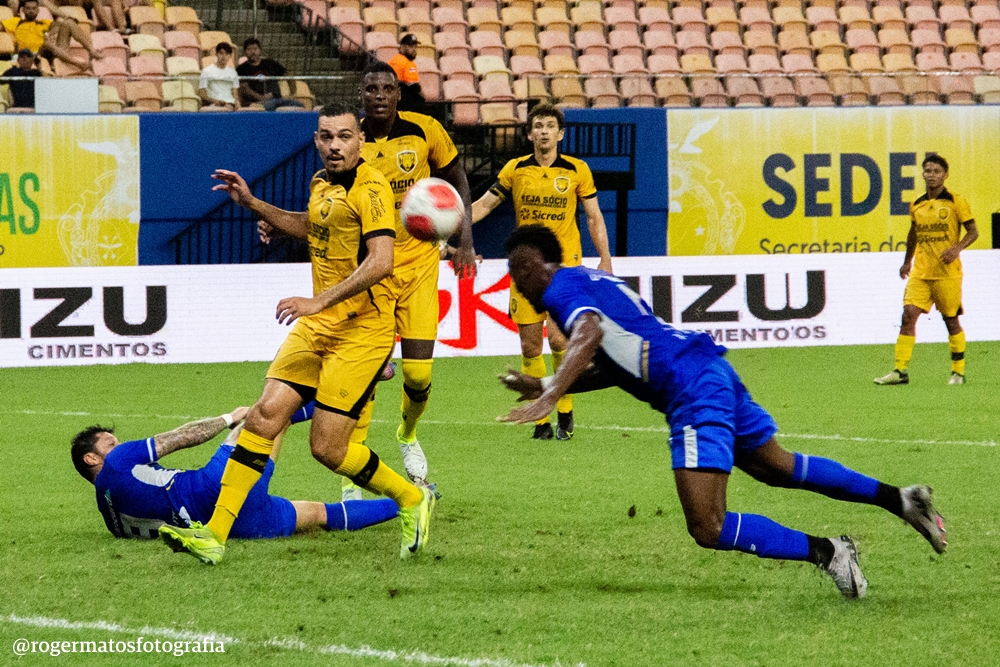 A partida começou com a bola sob domínio do Amazonas, que abriu o placar aos 11 minutos. Dentro da área azulina, Vitão recebeu bola e serviu Rodrigo Varanda, que driblou a marcação e finalizou cruzado para deixar a Onça em vantagem.