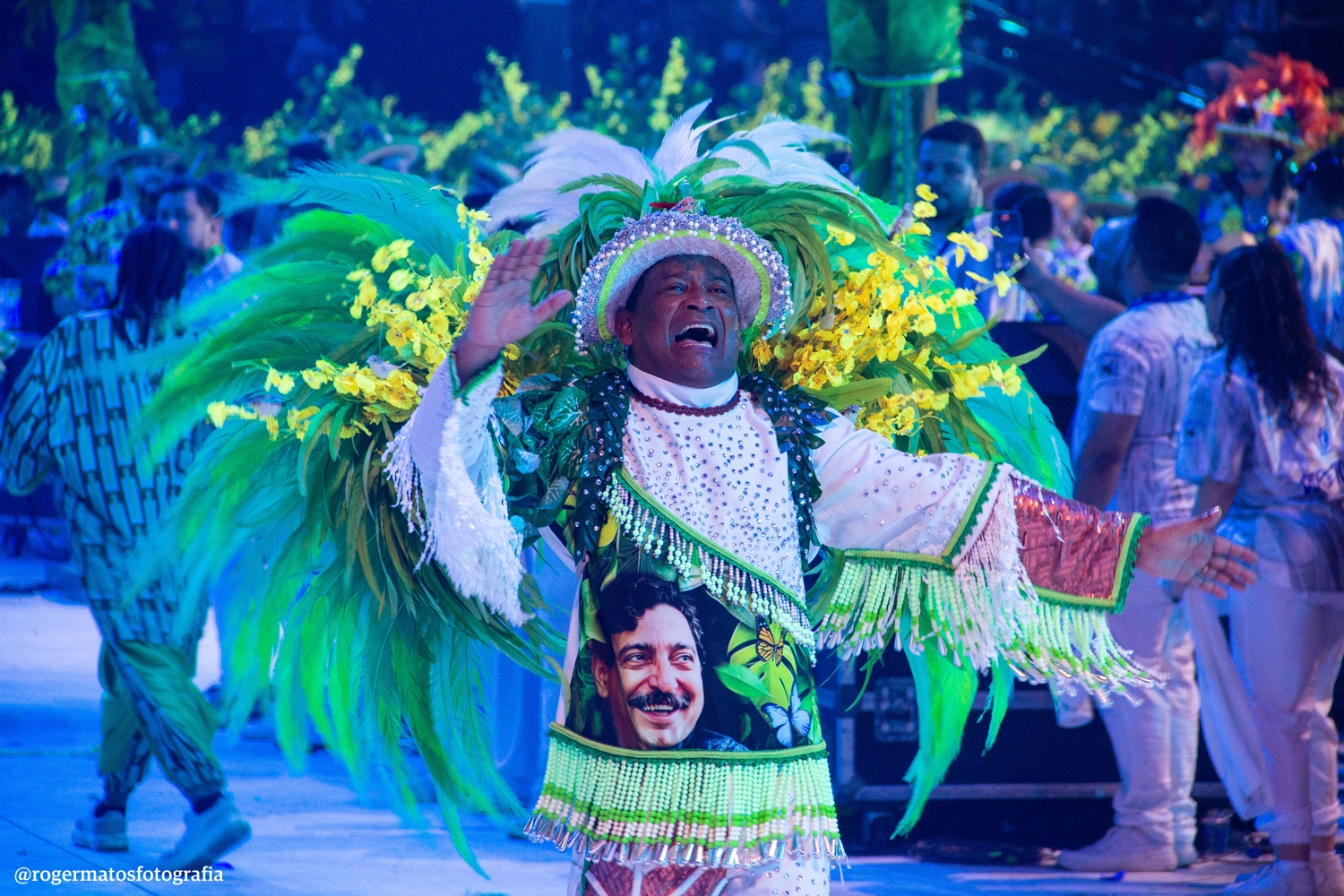 Um gigante módulo alegórico de Yacuruna, o senhor das águas, trouxe à arena a Rainha do Folclore Cleise Simas, simbolizando a Mãe D’Água.