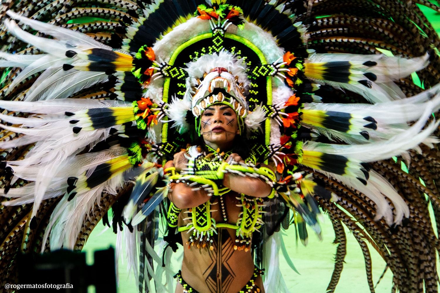 A lenda amazônica “Yurupari” abriu o espetáculo, sendo recontada de ser demonizado a ente sagrado da cultura indígena. A imponente alegoria revelou a Cunhã Poranga Marciele Albuquerque.