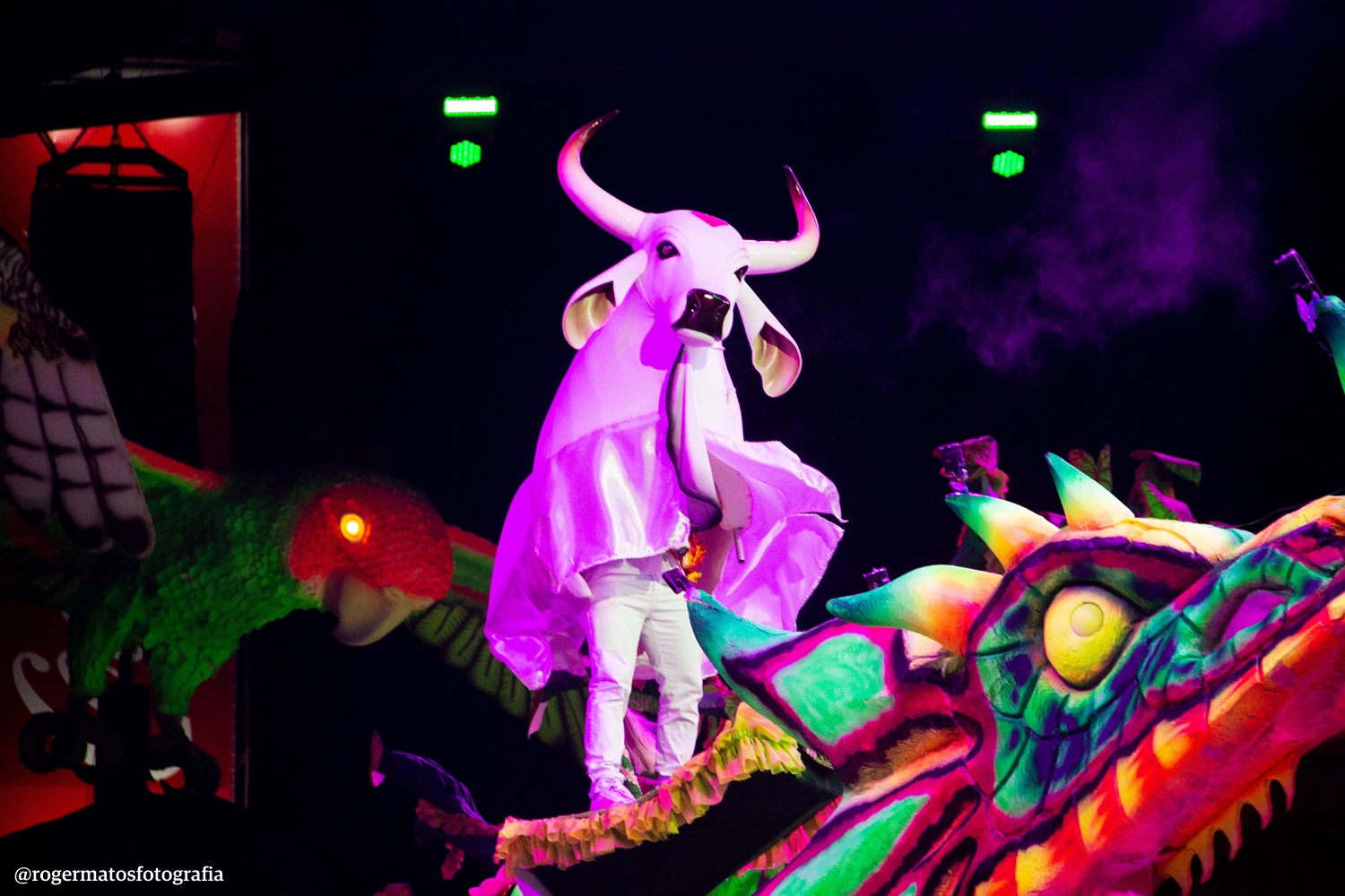O Garantido abriu o 58º Festival Folclórico de Parintins, na noite desta sexta-feira (27). Com o apresentador Israel Paulain comandando o espetáculo “Somos o Povo da Floresta” do meio da galera vermelha e branca, o boi do coração na testa surgiu na Celebração Folclórica, sobre uma gigante serpente.