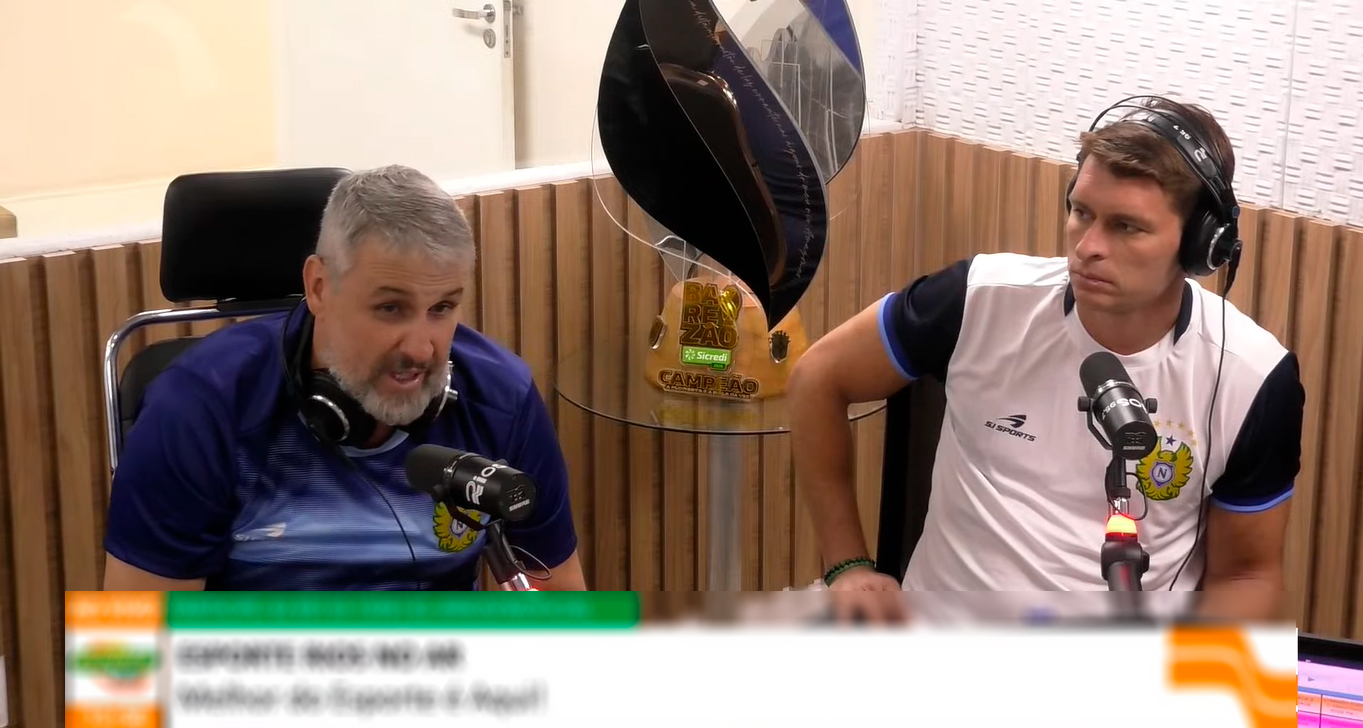 Na tarde desta segunda-feira (23), a banca do programa Esporte Rios, da Rádio Rios FM, recebeu o Nacional Futebol Clube – campeão amazonense 2026. O Leão da Vila foi representado pelo diretor de futebol Ângelo Márcio, o técnico Thiago Gomes e o atacante Vitinho, que levaram ao estúdio a taça que simboliza a 44ª conquista estadual da sua história.