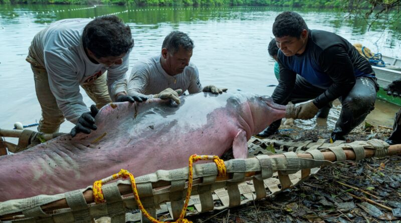 Captura científica de botos-vermelhos busca compreender ecologia e saúde da espécie na Amazônia Central