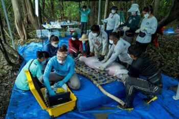 “Capturar esses animais é de extrema importância para compreendermos o panorama de saúde dessa população de botos de forma abrangente, definindo parâmetros de saúde como uma preparação para o que pode acontecer em anos futuros”, comenta Miriam Marmontel, líder do Grupo de Pesquisa em Mamíferos Aquáticos Amazônicos do Instituto Mamirauá. “Neste ano, felizmente, a seca não tem sido tão intensa como nos dois últimos anos, portanto não esperamos que haja uma mortandade de botos. Contudo, devido aos impactos das mudanças climáticas, tudo indica que eventos extremos se tornarão mais comuns, e precisamos estar preparados”, complementa.
