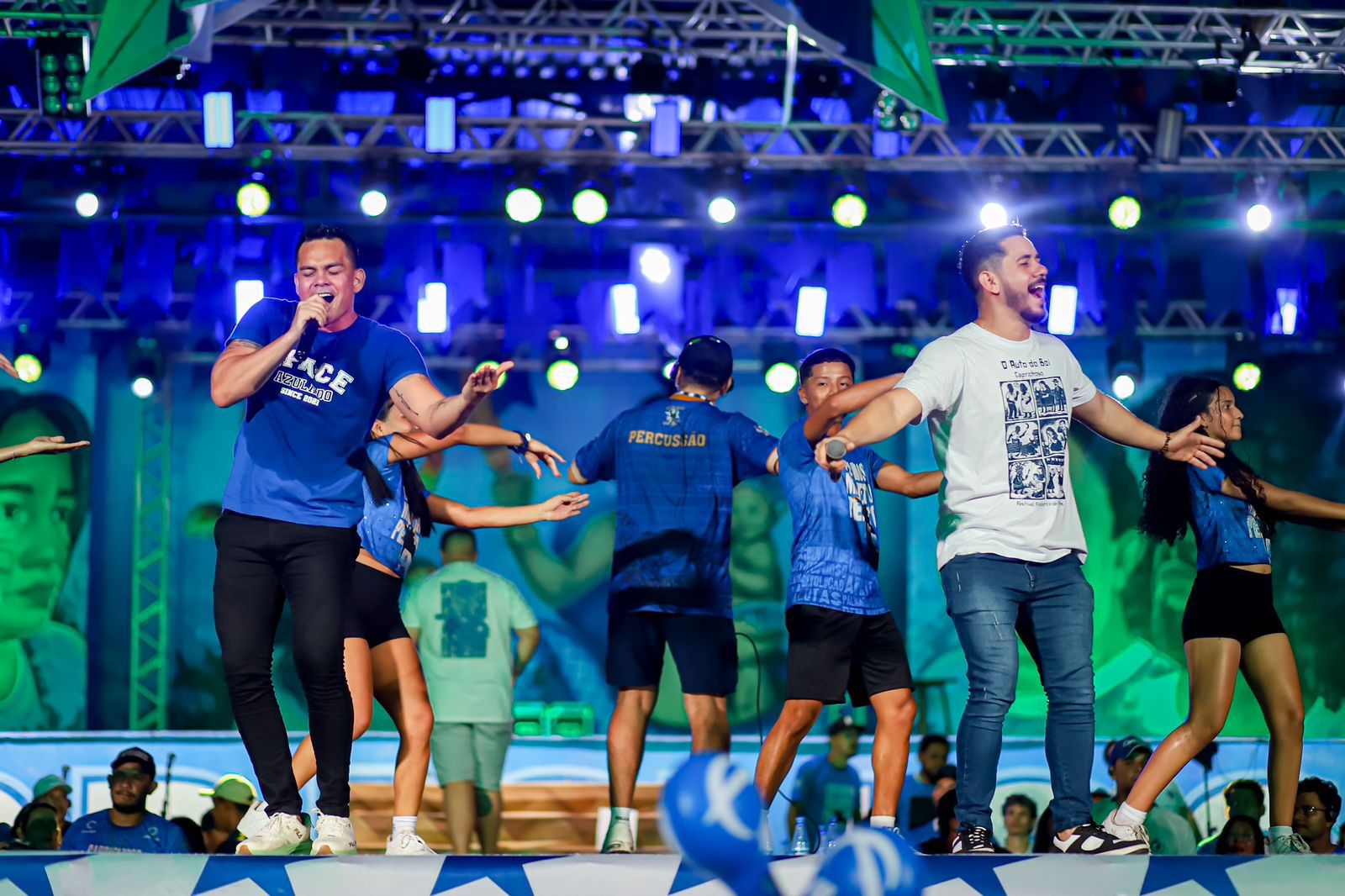 Contagiados pelas toadas, os integrantes da Raça Azul e dos grupos de dança CDC e Troup Caprichoso mostraram a força de uma nação que vive a expectativa pelo grande dia.