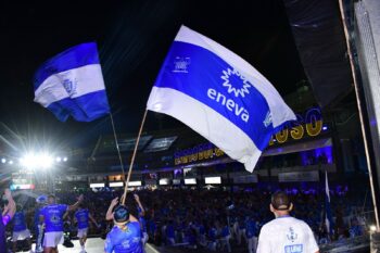A presença da companhia também se estende ao ambiente visual dos ensaios, com ativações de marca por meio de wind banners e bandeiras, movimentadas pelas torcidas oficiais de cada boi, ampliando a visibilidade e o engajamento com o público.