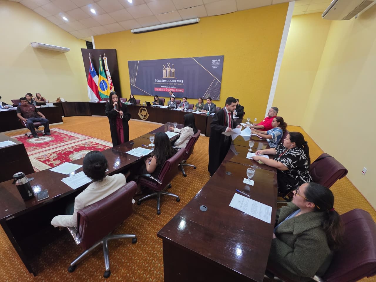 O Júri Simulado do MPAM segue até sexta-feira (29), proporcionando aos acadêmicos a experiência prática da atuação em um Tribunal do Júri e estimulando o aprendizado por meio da vivência realista de casos criminais.