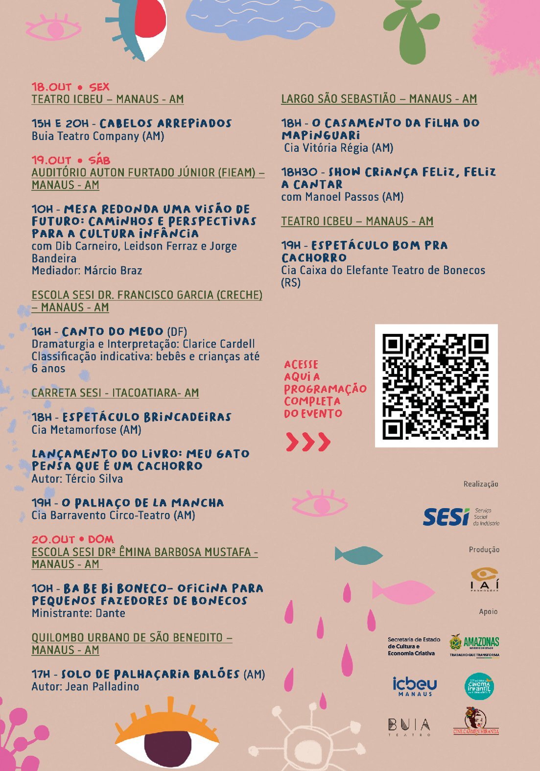 A programação tem mais de 15 atrações gratuitas com peças de teatro, oficinas, palestras e brincadeiras até o dia 20 em Manaus, Itacoatiara e Parintins