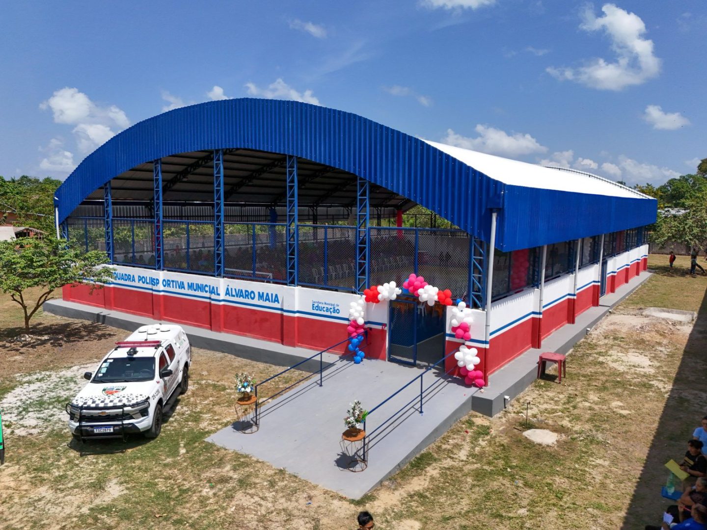 Integrada às instalações da Escola Municipal Álvaro Maia, a quadra conta com demarcações para a prática de modalidades como futsal, handebol e vôlei, além de arquibancadas que proporcionam mais conforto aos espectadores. Toda coberta, a estrutura permite a realização de atividades esportivas e eventos em qualquer condição climática.