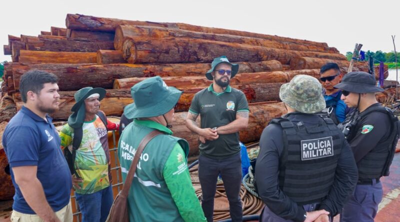 Sedema acompanha verificação de balsas com 3 mil m³ de madeira no Paraná do Ramos