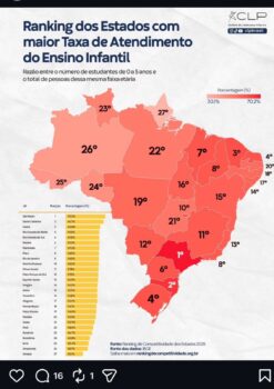 “Estamos entre os piores do Brasil quando o assunto é garantir creche e pré-escola para crianças de 0 a 5 anos. Isso não é número frio. Isso é criança fora da escola. É mãe sem conseguir trabalhar. É pai se virando como pode. É o futuro sendo abandonado logo no começo da vida”, disse a pré-candidata ao governo Professora Maria do Carmo (PL), que usou suas redes sociais nesta segunda-feira, 5/1, para divulgar o levantamento e jogar luz sobre um tema que tem sido negligenciado pelos governantes.