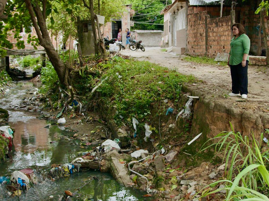 “Uma cidade suja, mal cuidada, um verdadeiro esgoto a céu aberto”, dispara Maria do Carmo ao mostrar igarapés poluídos, lixo para todo lado e revelar dados vergonhosos de falta de saneamento básico em Manaus.