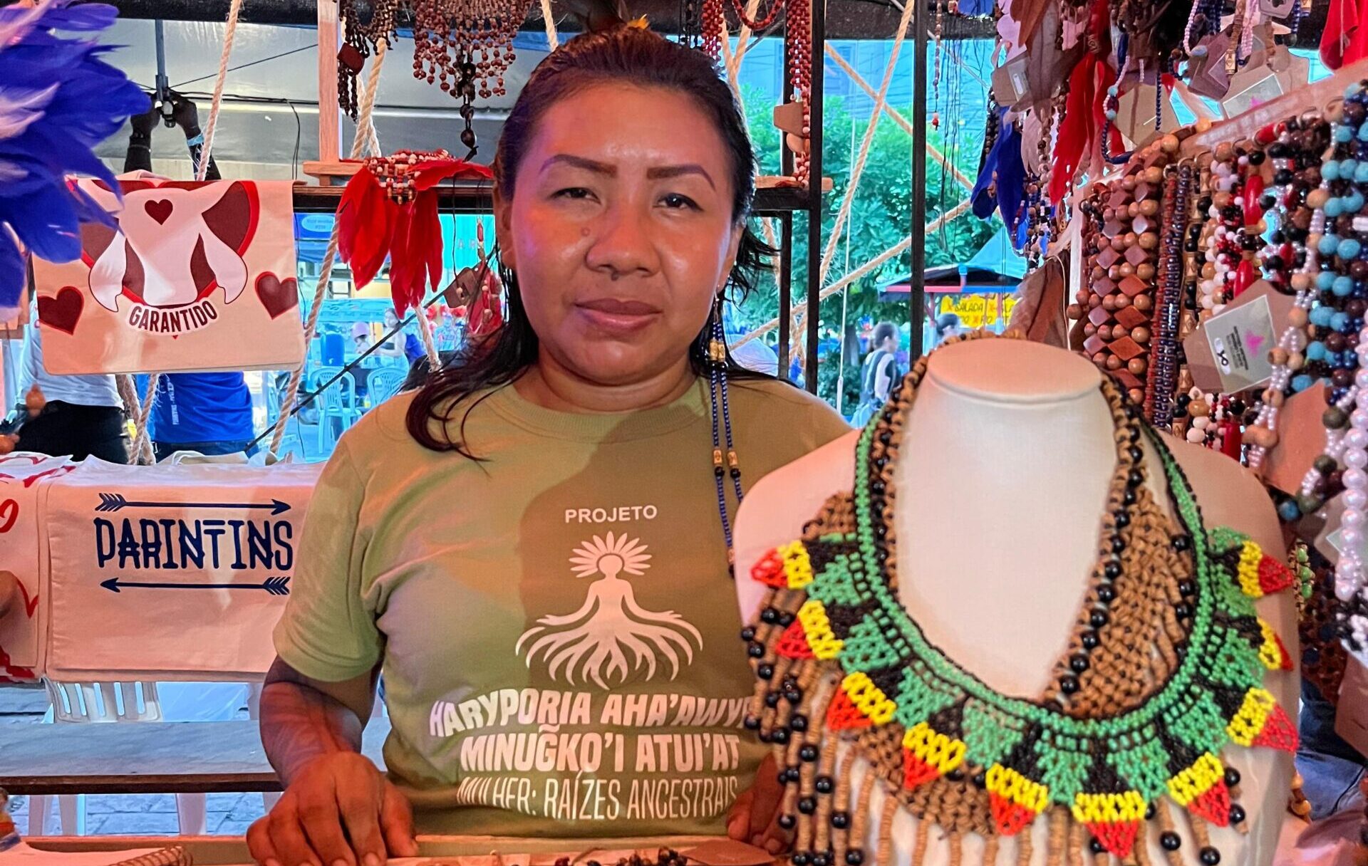 O projeto promoveu a produção artesanal de mais de 800 acessórios indígenas por dez mulheres da etnia Sateré Mawé