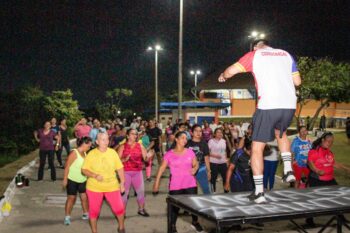 Com a presença de um grande público, a Prefeitura de Parintins, por meio Secretaria Municipal de Juventude, Esporte e Lazer (Semjel), em parceria com a Unidade Básica de Saúde – UBS Darlinda Ribeiro, realizou neste sábado, 12, no bairro Palmares, a 4ª edição do projeto “Movimenta Parintins”.