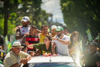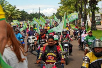 As ruas de Itacoatiara foram coloridas de verde e amarelo neste sábado, 25/4, com a chegada da Tropa da Professora Maria do Carmo (PL), que esteve no município para prestigiar o lançamento da pré-candidatura de Arnoud Lucas para deputado federal e participar dos festejos pelo aniversário de 152 anos da cidade da pedra pintada.